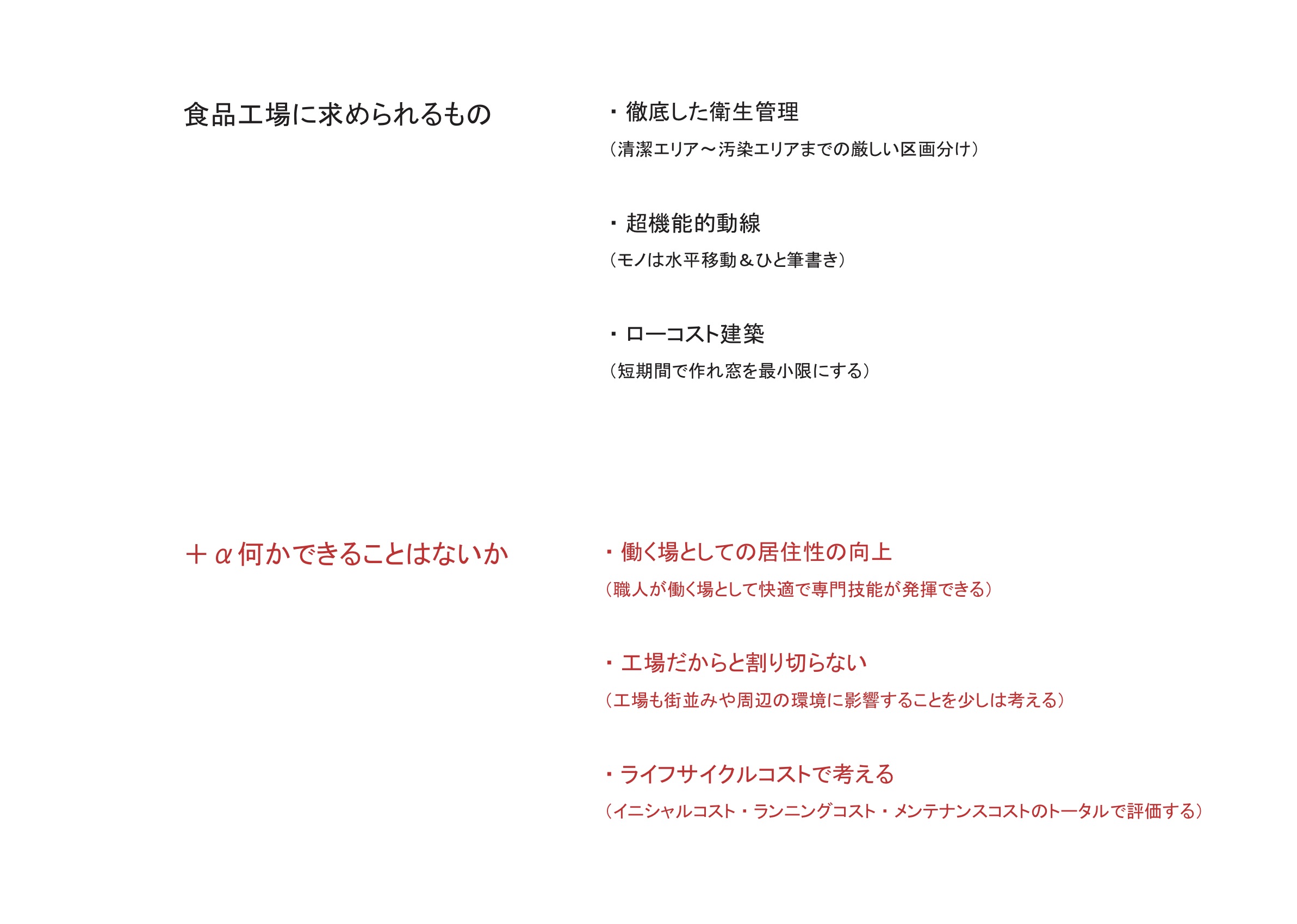 (例)食品工場のほとんどが窓のない四角い箱型建築で、サインでのみ認識できるものばかり