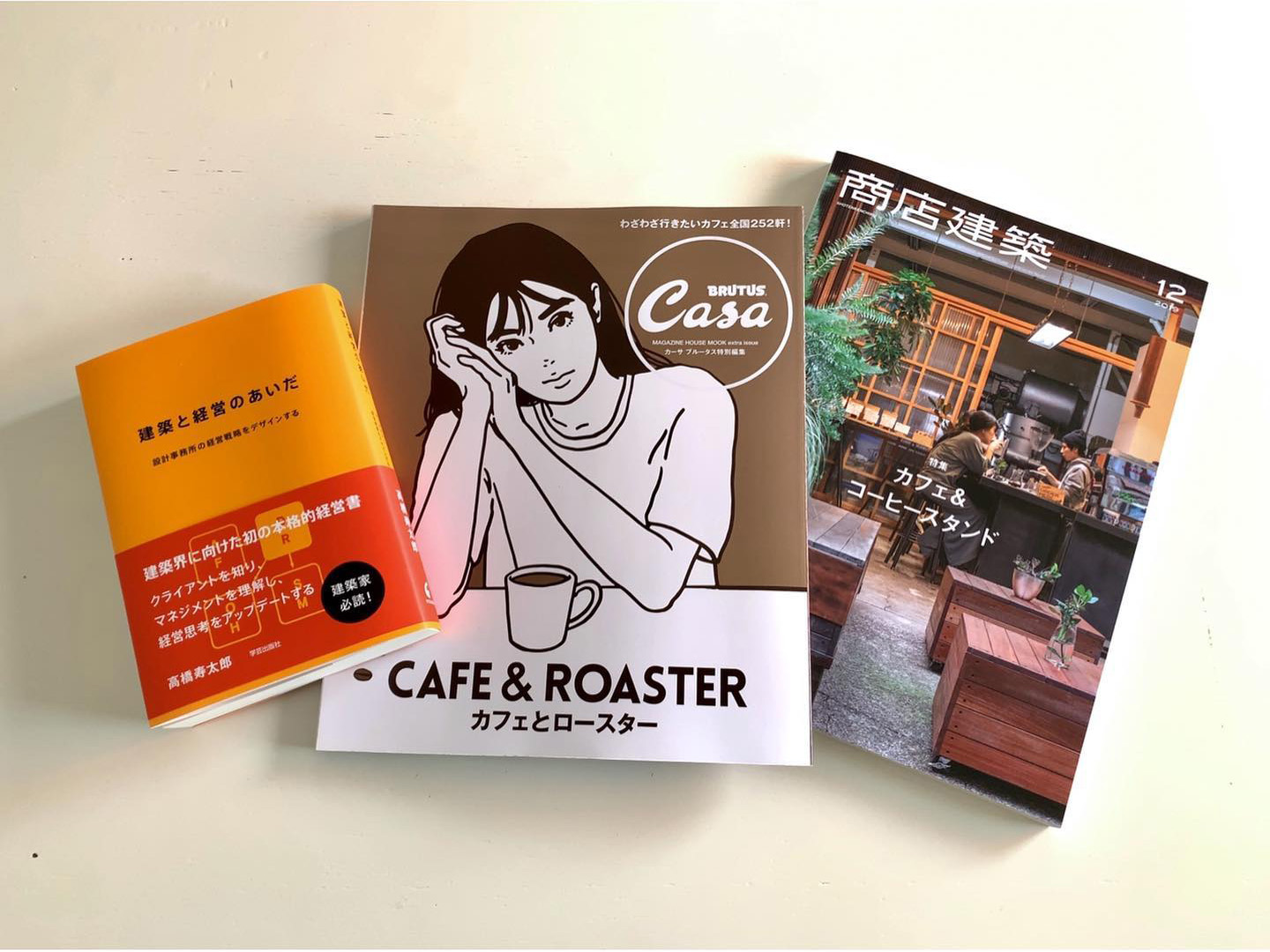 3つの出入り口(左から人の出入り口・珈琲豆の入口、珈琲豆の出口)が内部の明快なゾーニングを示しています。